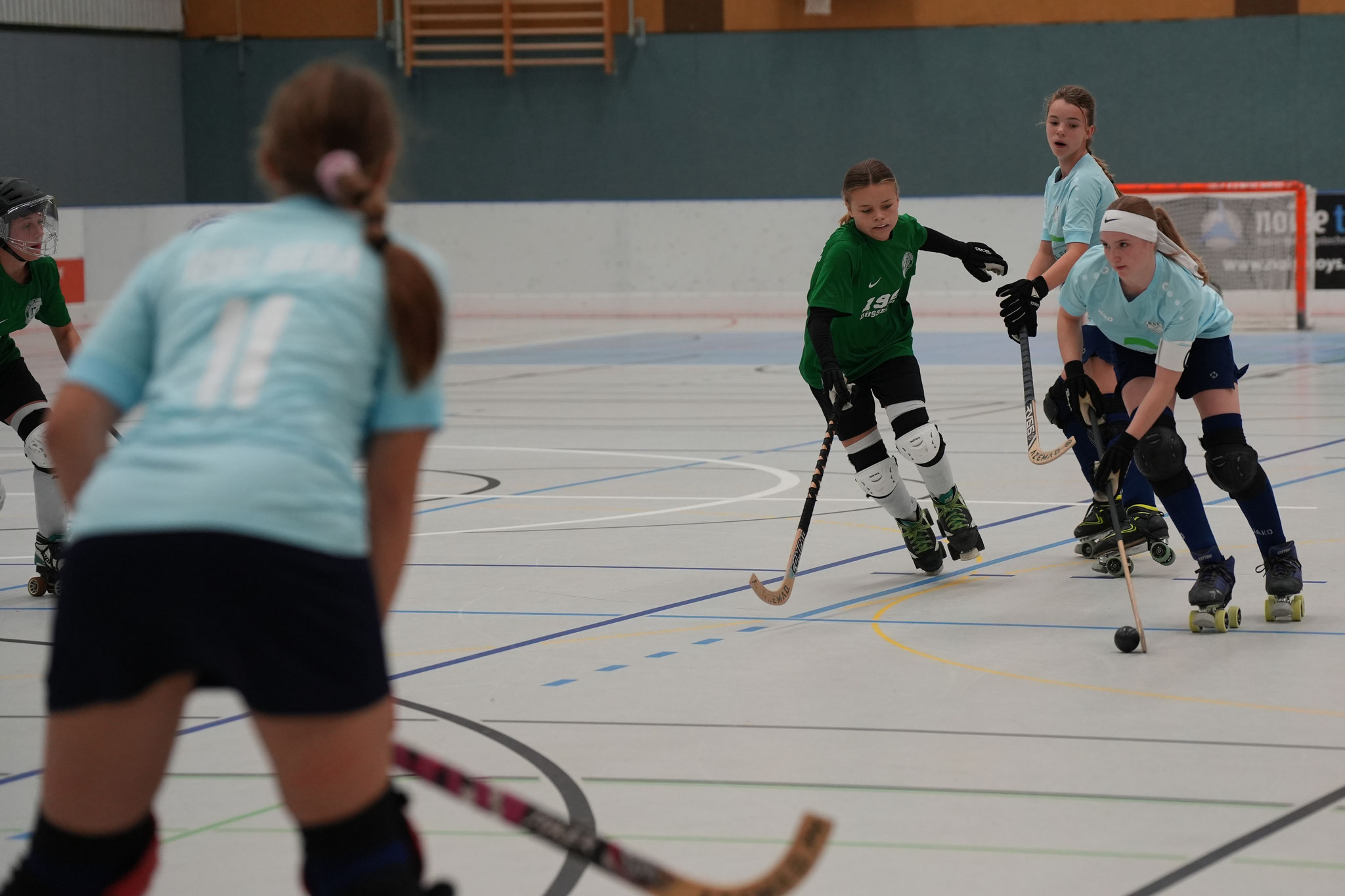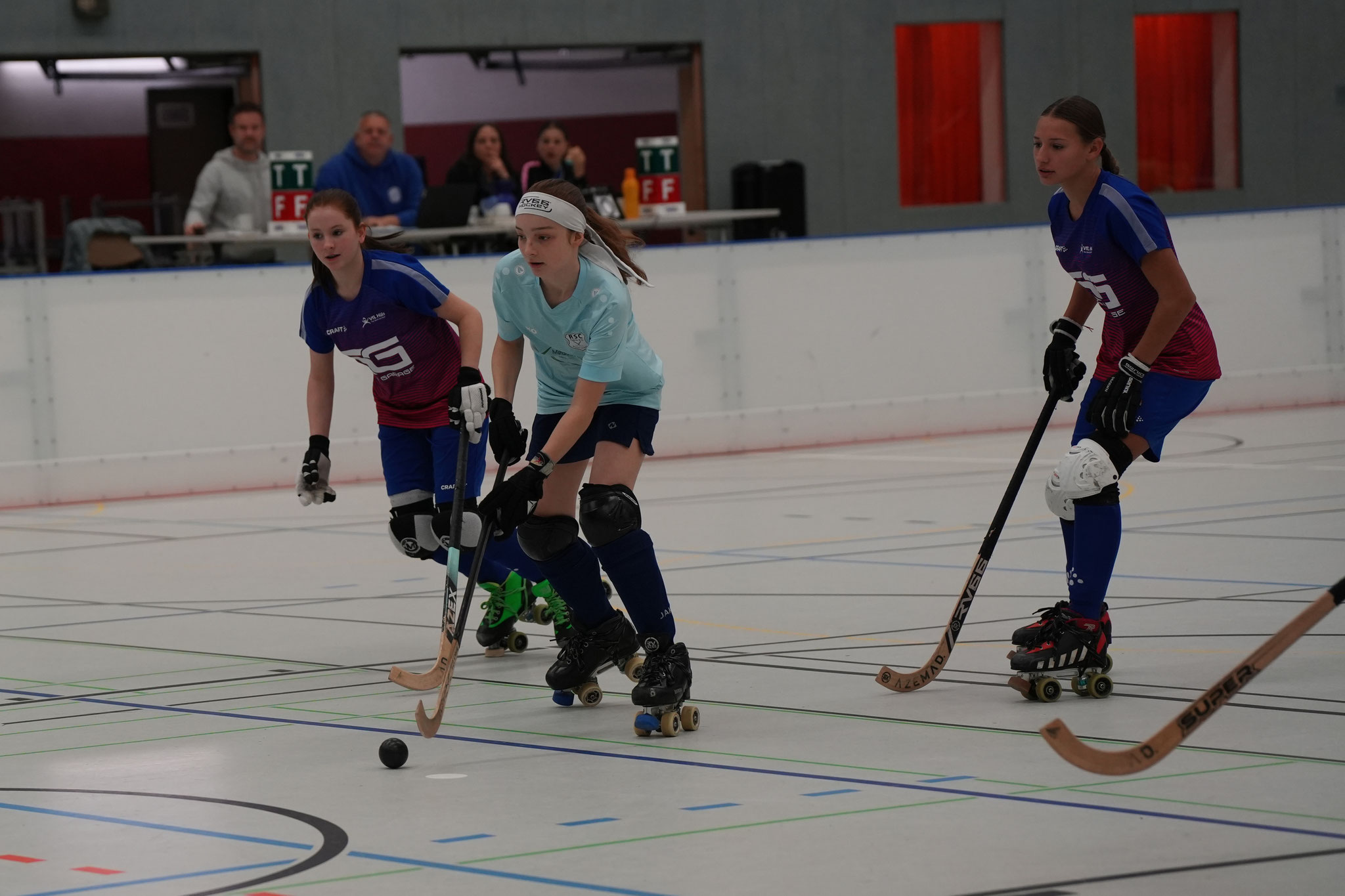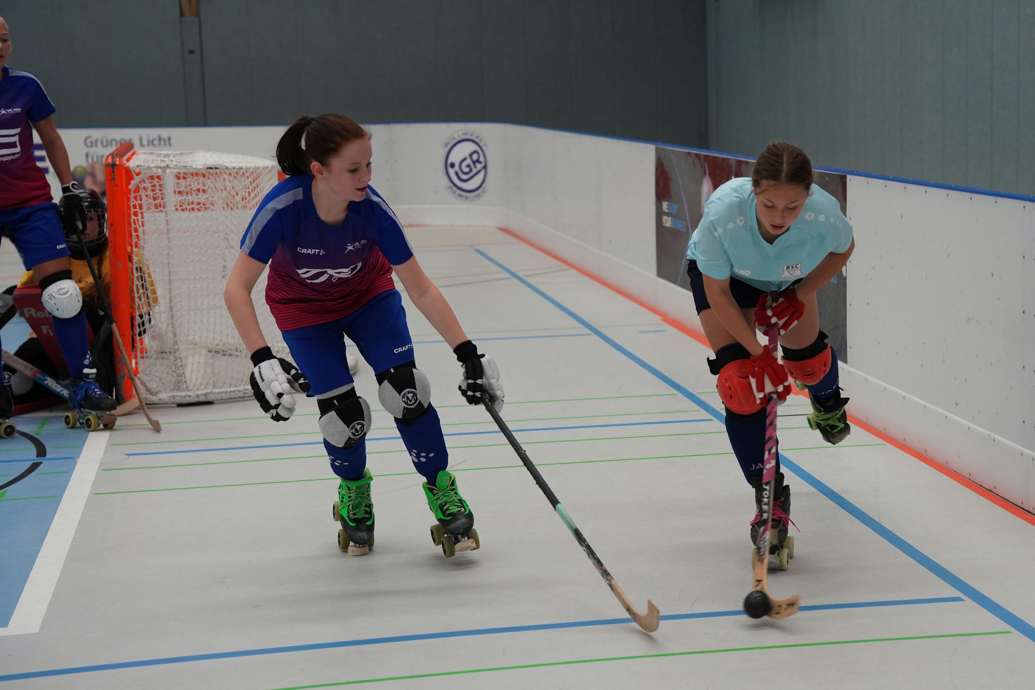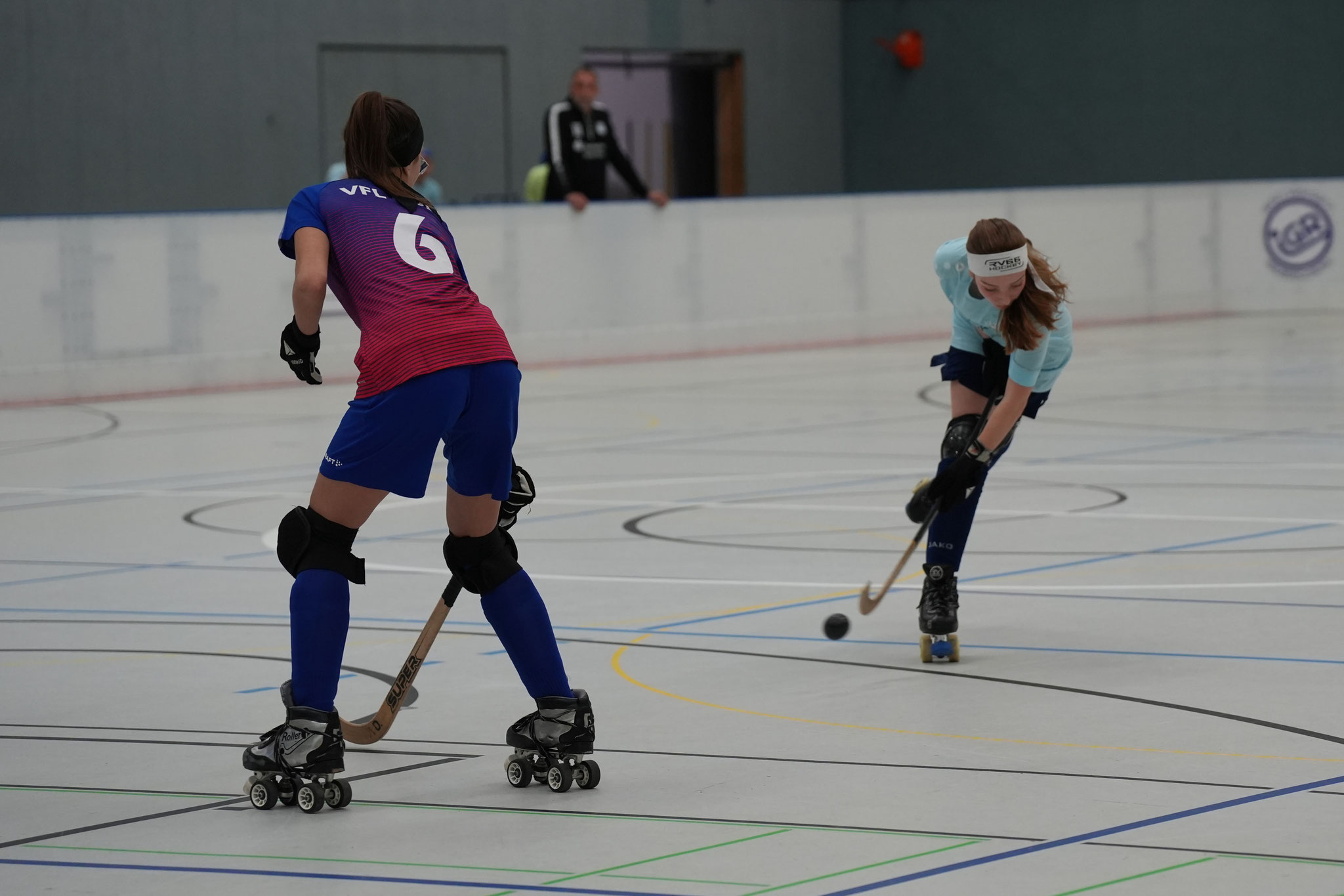 Im ersten Spiel ging es gegen die SG Hüls 1/Darmstadt. Der Beginn war sehr nervös, und es dauerte ein wenig, bis die Mannschaft sich sortiert hatte. So ergab sich eine offene Anfangsphase auf beiden Seiten, bis sich die SG in einen eng stehenden Viererblock zurückzog. Damit begann eine offensiv starke Phase für den RSC, die Finja mit einem schönen Solo krönte. Im Anschluss konnte man sich aber nur selten durch die dicht gestaffelte Abwehr spielen und verlegte sich auf Abschlüsse von außerhalb des Abwehrblocks der SG. Der RSC tat sich jedoch weiterhin schwer: Entweder zielte man zu ungenau, oder die Abpraller konnten nicht genutzt werden. Knapp fünf Minuten vor dem Ende der 1. Halbzeit fand das Spiel ein unschönes Ende. Ein Schussversuch von Finja traf eine Spielerin der SG so unglücklich am Kopf, dass sie vorsorglich ins Krankenhaus gebracht werden musste. Die Spielerinnen auf beiden Seiten waren sichtlich mitgenommen, woraufhin der Schiedsrichter richtigerweise das Spiel abbrach.