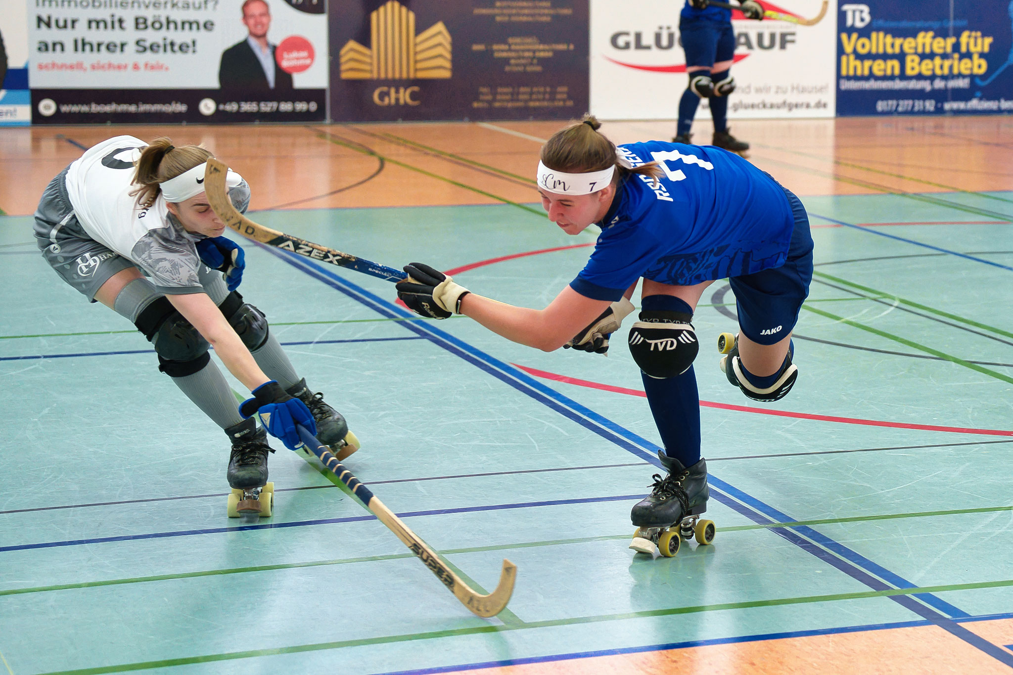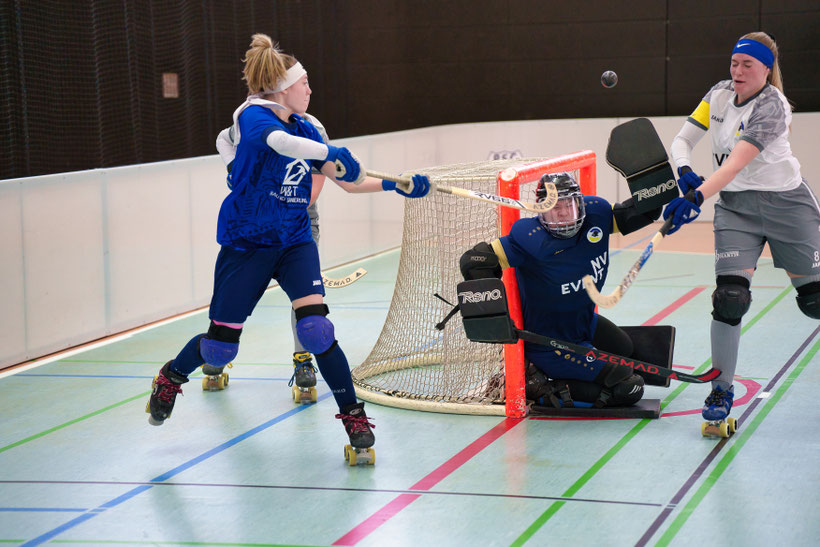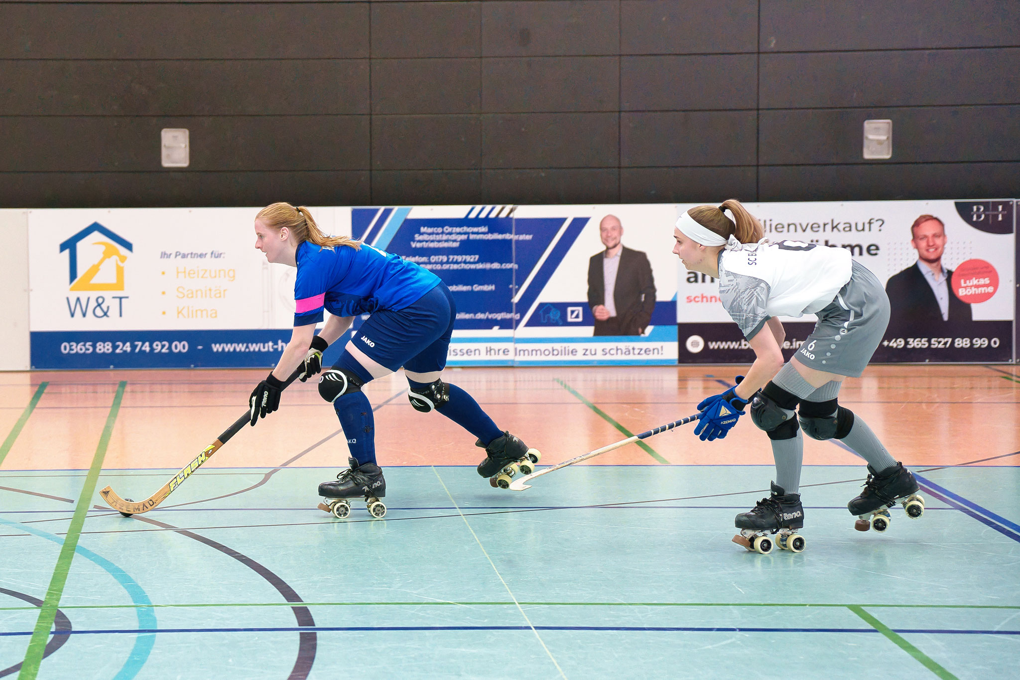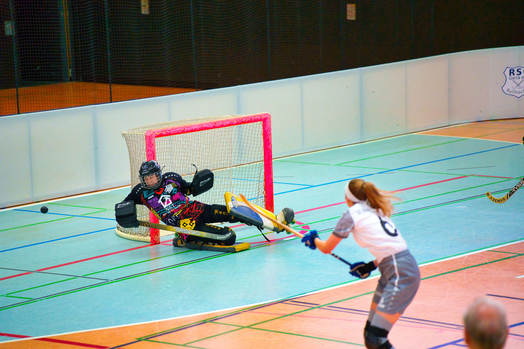 Gera. Ihre zweite Niederlage hat die SG Gera-Wuppertal in der 1. Rollhockey-Bundesliga der Damen hinnehmen müssen. Gegen die SG Calenberg/Recklinghausen zogen die Gastgeberinnen in der Panndorfballe mit 1:4 den Kürzeren, wobei sich der Aufsteiger durchaus achtbar aus der Affäre zog. Problem im Spiel des Teams von Trainer Enrico Rhein war die schwache Chancenverwertung. „Wie schon in Lichtstadt gegen das Team Holland hatten wir das Spiel offen und kommen immer wieder zu vielversprechenden Gelegenheiten. Nur sind unsere Abschlüsse meist viel zu harmlos, zumal unser heutiger Kontrahent eine sehr gute Torhüterin zwischen den Pfosten hatte. Es fehlt uns noch an der Durchschlagskraft und an der Körperlichkeit. Daran müssen wir arbeiten. Zudem zahlen wir in der Abwehr Lehrgeld und kassieren immer wieder unnötige Gegentore“, sagte Enrico Rhein.